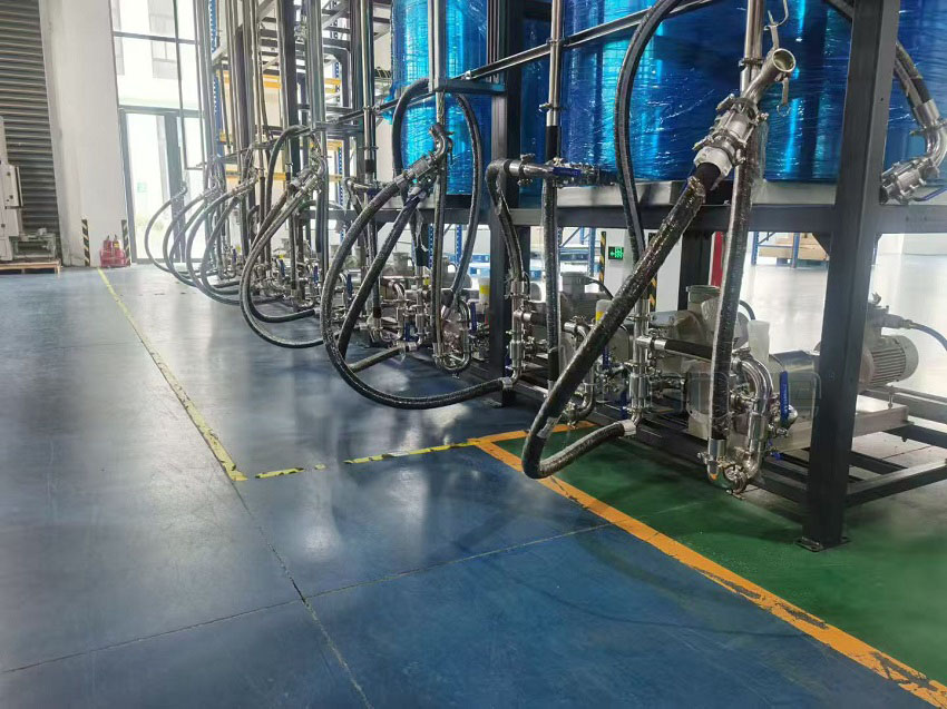 Este caso representa um projeto de sistema altamente eficiente e prático. O tanque de mistura é instalado diretamente acima da bomba de lóbulos rotativos, criando um layout compacto e que economiza espaço.