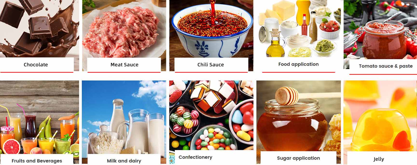 Além de aplicações na transferência de chocolate, as bombas de lóbulos de aço inoxidável Bonve são amplamente utilizadas nas indústrias alimentícia, de laticínios, confeitaria, bebidas e vinhos. Os fluidos de transferência típicos incluem: chocolate, leite condensado, queijo, maionese, iogurte, mel, xarope, sacarose, ketchup, extrato de tomate, manteiga, suco concentrado, geleia, sorvete, leite, pasta de levedura, pasta de carne, gelatina, condimentos, proteína de soja, diversas bebidas e vinho.